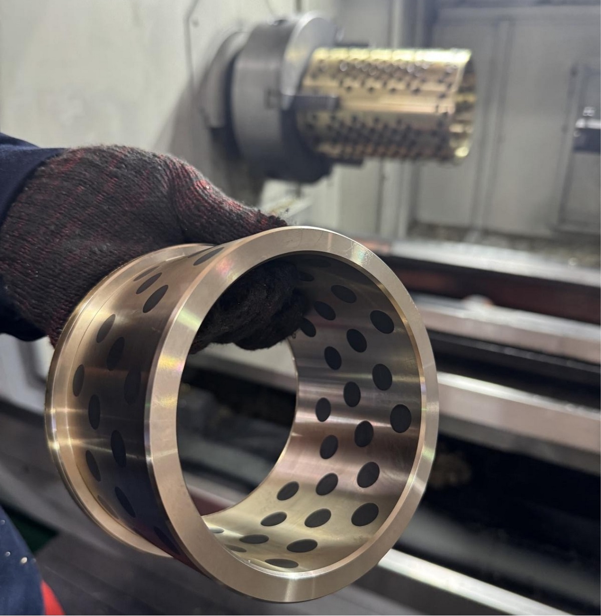 Kopparlegeringens självsmörjande material består av en kopparmatris förstärkt med legeringselement som tenn (SN) och aluminium (AL), tillsammans med fasta smörjmedel såsom grafit och molybden disulfid (MOS₂). Tenn förbättrar legeringsstyrka och korrosionsbeständighet, medan aluminium hjälper till att bilda en tät oxidfilm för att förbättra ytprestanda. Element som bly optimerar också effektivt tribologiska egenskaper.